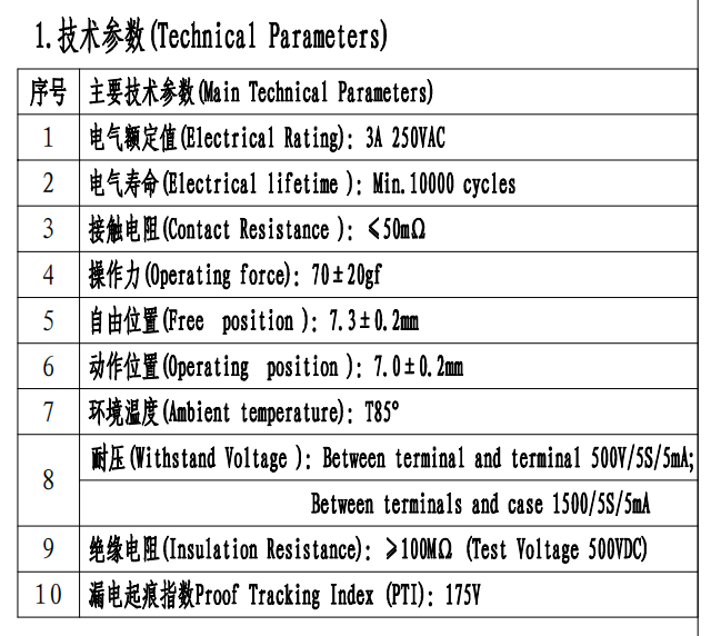 | 1 | التصنيف الكهربائي: 1A/3A 250VAC |