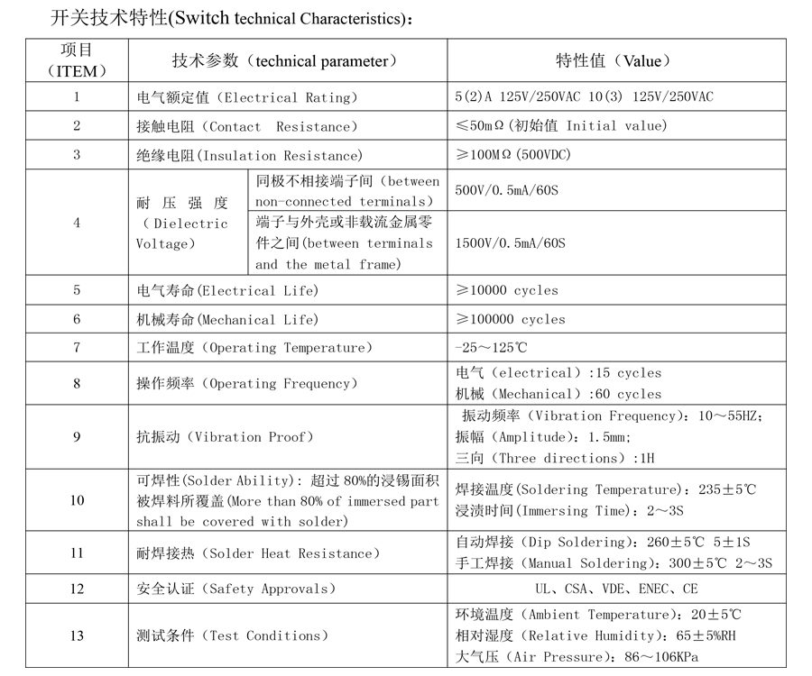 | 1 | التقييم الكهربائي | 5(2) أمبير 125 فولت/250 فولت تيار متردد 10(3)125 فولت/250 فولت تيار متردد | |