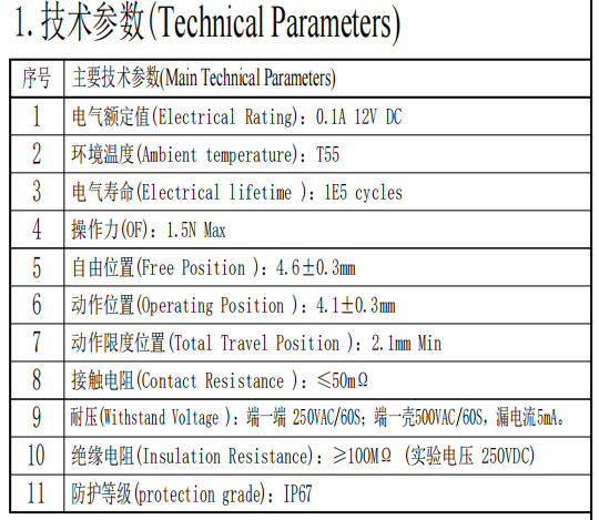 | 1 | التصنيف الكهربائي | 0.1A 12VDC | |