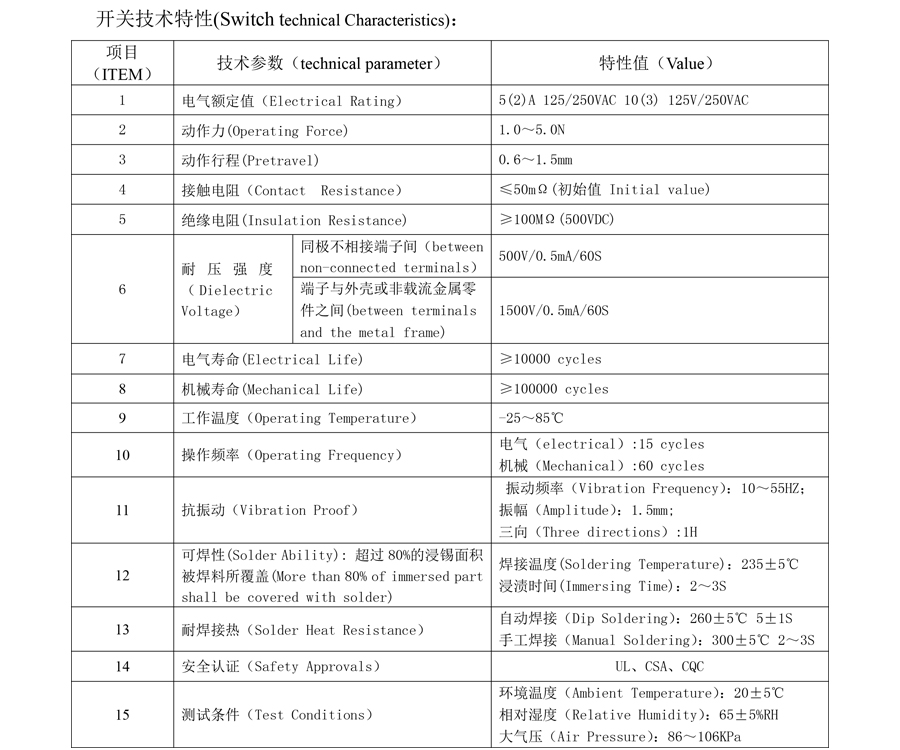 | 15 | شروط الاختبار | درجة الحرارة المحيطة: 20±5 درجة مئوية الرطوبة النسبية: 65±5% ر Çin Weipeng Kavisli Saplı Tel Otomatik Kontrol Su Geçirmez Mikro Anahtar Tedarikçiler, Üreticiler - Fabrika Doğrudan Fiyat - WEIPENG |